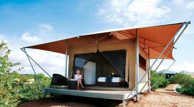 Are you looking for a glamour camping experience with spectacular ocean views? Look no further than Eco Beach Resort in Australiaâs state of Western Australia. These multi-award winning safari-style eco tents sleeping 2- 4 people are set amongst the magnificent Kimberley environment in Australia. The tents are located on interlinked elevated wooden boardwalks and offer spectacular views of the Indian Ocean. The facilities include luxurious king size beds, ensuite toilet and shower, complimentary daily yoga, fishing charters, whale watching, Mud Nâ Bubbles, kayak hire and a sunset cruise. What a fantastic addition to your motorhome adventure!