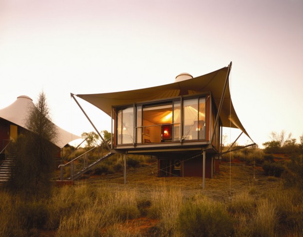 Those venturing to Australiaâs iconic Red Centre will experience the ultimate glamping experience at Longitude 131 Degrees. Each of the 15 tents has a white dome roof with flowing fabric to create the illusion of camping. Other features include deluxe king size beds, controlled blinds revealing the magnificent beauty of Uluru and five-star amenities. You wonât be disappointed with this magnificent glamping experience.