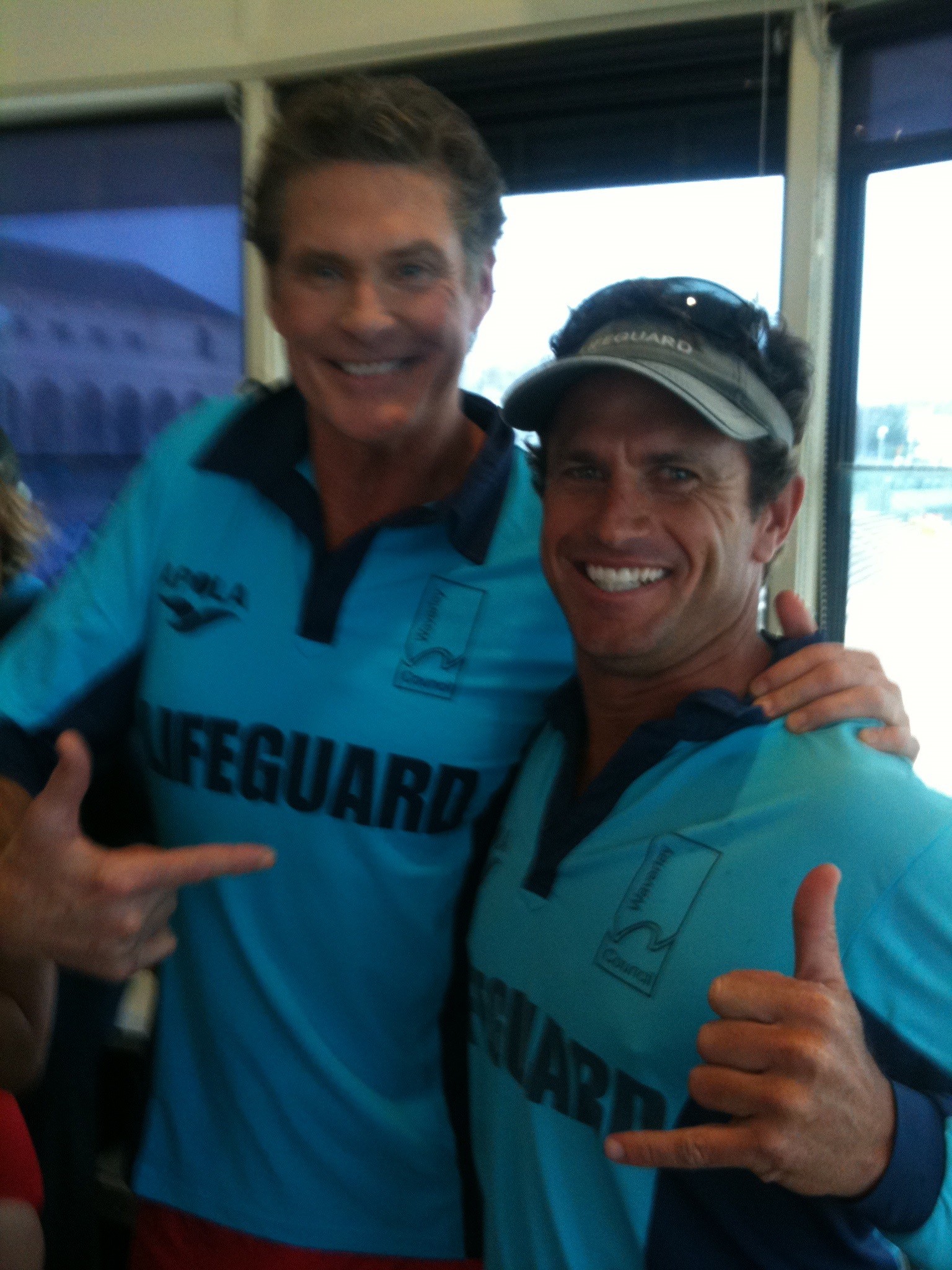 Me (Corey Oliver), well i’ve been a Lifeguard for the past 16 years at Bondi Beach and haven’t looked back. From the early days of chasing dreams of competitive body boarding & a huge love of the outdoors, the ocean, travelling and freedom to live my life, working on the beach couldn’t have made it any easier. The Endless Summer!! Meeting so many travellers has kept the travel dream alive and well. I’ve done a couple of road trips recently  & using a Cruisin Motorhome in Tasmania got me hooked!!! I’m a definite convert and i know the boys & other mates are looking at making  bookings in the near future.  Here is a photo of me with the Hoff!