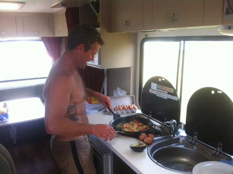 When we finally set our eyes on the VW 6 berth Discovery wasn’t it a sight! A TV, shower, toilet, gas cookers, fridge, 3 comfortable beds and storage galore. With the trusty German auto engineering the camper went like a dream and was so easy to get used to driving. The surf was flat and the wind was blowing so there was nothing to do but cruise the streets in our new mobile home and get stuck into some man shopping- Body Science, Billabong, Kirra Surf and finally the bottle-O to stock the fridge.