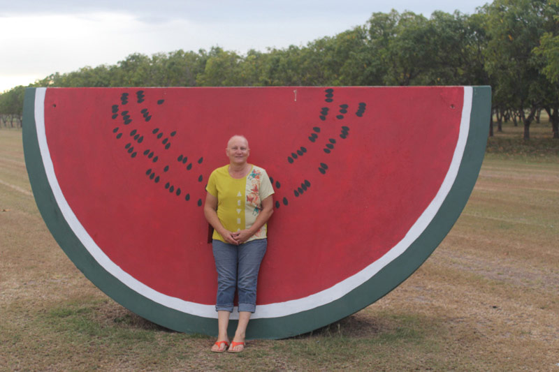 stand that had a Big piece of water melon and a Big Queensland Blue